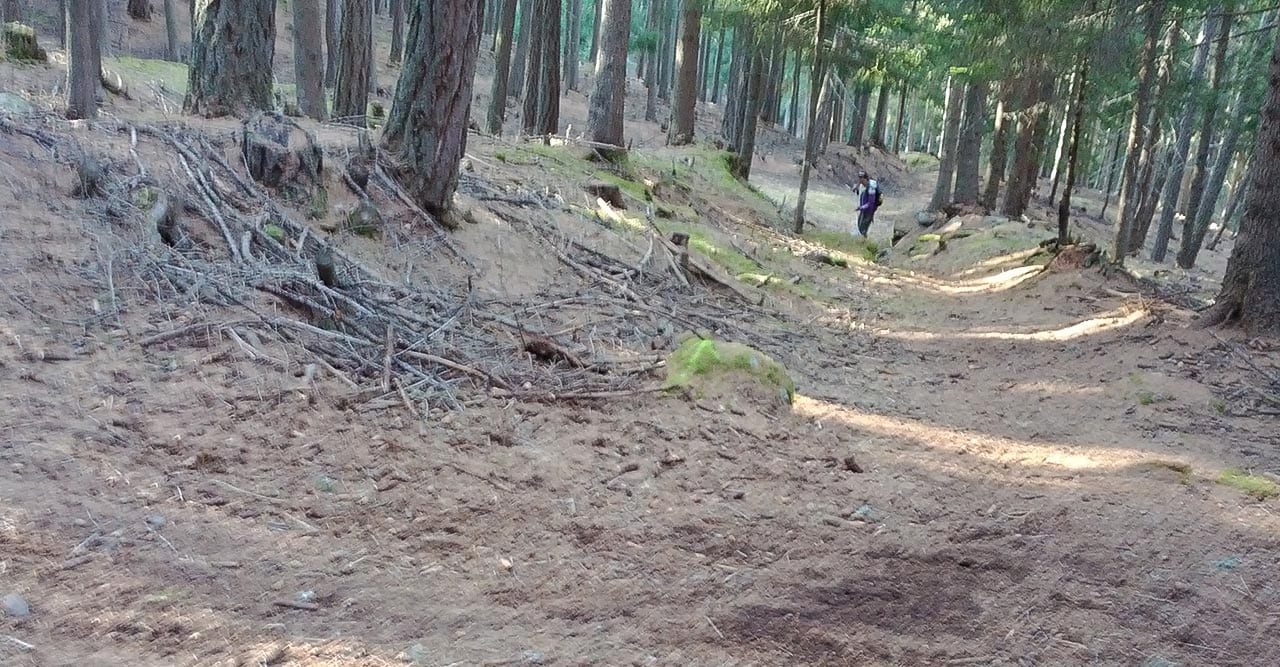 Bauer Sigi bot sein Waldstück für einen Trail oberhalb seines Hofes an. Da kurz nach dem Propain Trail Bau aber kein Geld verfügbar war, übernahmen wir vinschgauBIKEr die Kosten und bauten die Hofumfahrung.