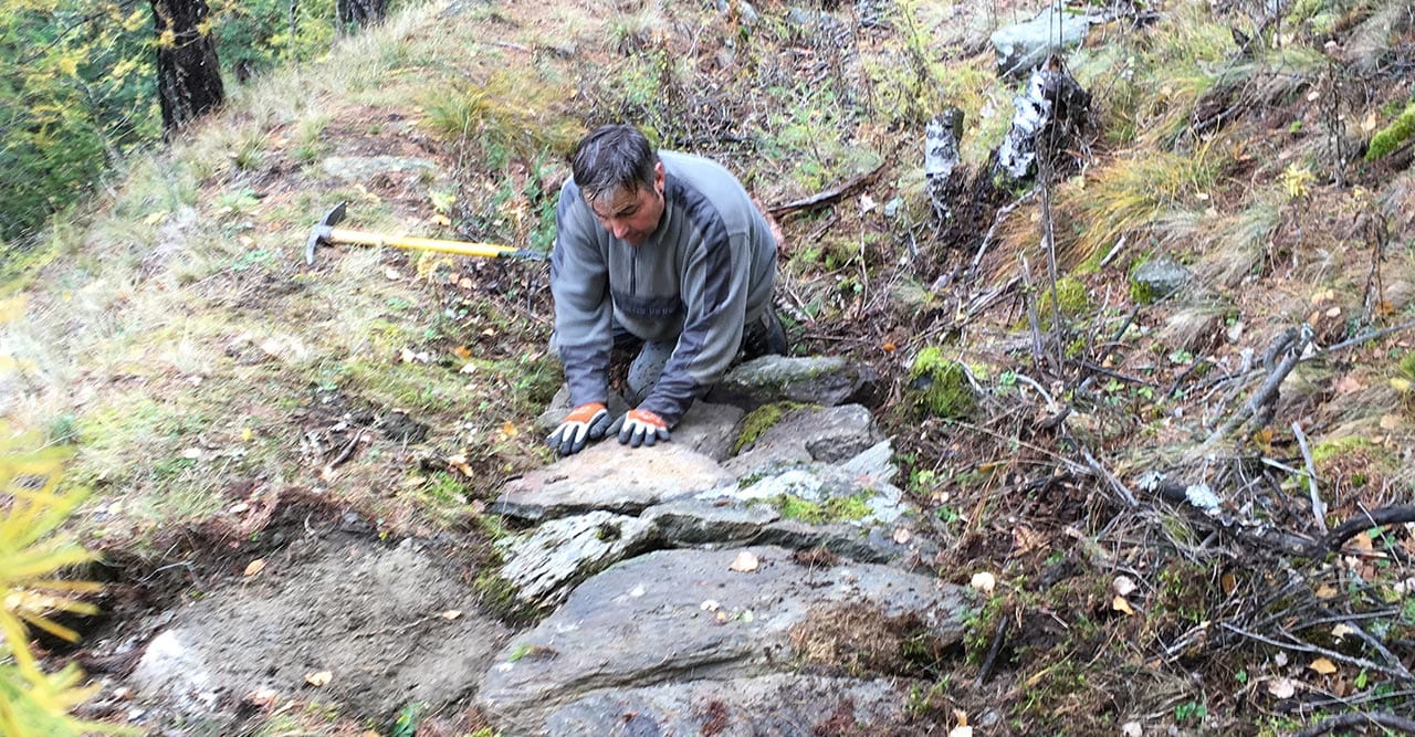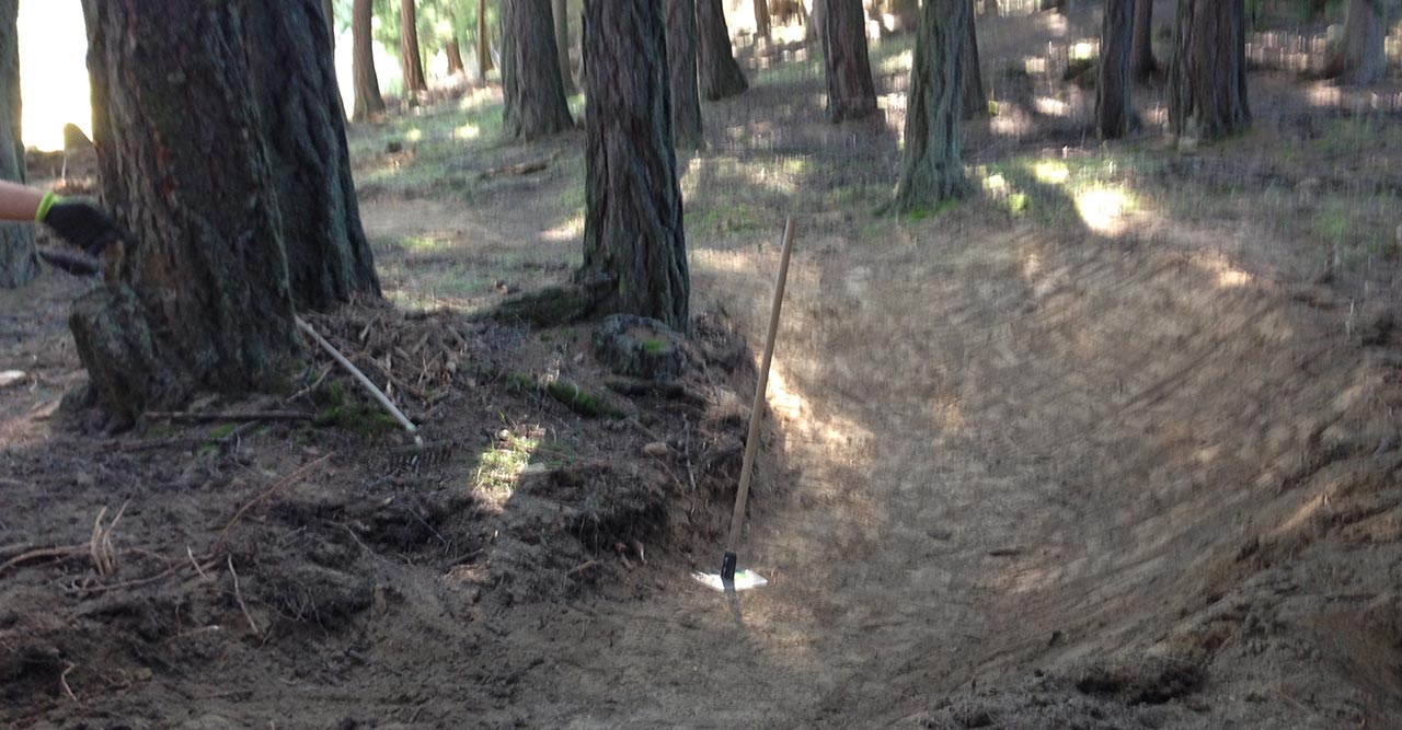 Am darauf folgenden Tag im Frühjahr 2012 standen ein Trupp von 4 Mann und ein Mini Bagger am Trailhead.