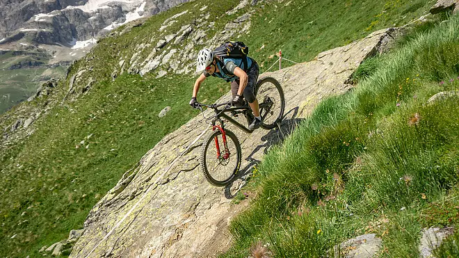 Die Trails im Aosta Tal sind alpin, aber auf die geschmeidige Art. Deine Fahrtechnik stellen sie aber immer wieder auf die Probe. Eine sichere und saubere Fahrweise im alpinen Gelände ist also sehr wichtig.