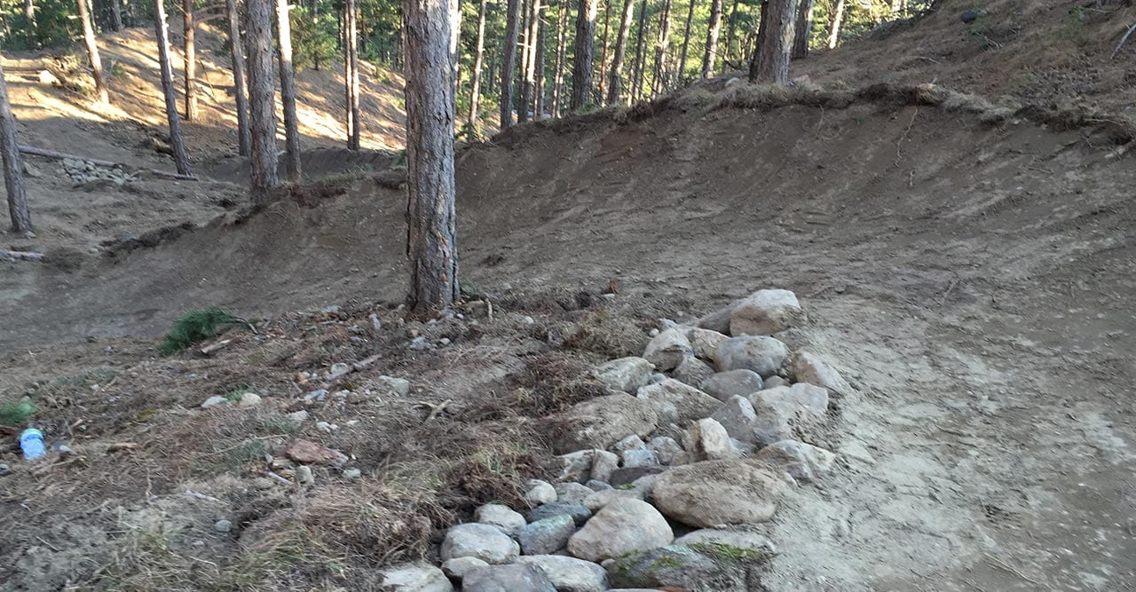 Bauer Sigi bot sein Waldstück für einen Trail oberhalb seines Hofes an. Da kurz nach dem Propain Trail Bau aber kein Geld verfügbar war, übernahmen wir vinschgauBIKEr die Kosten und bauten die Hofumfahrung.