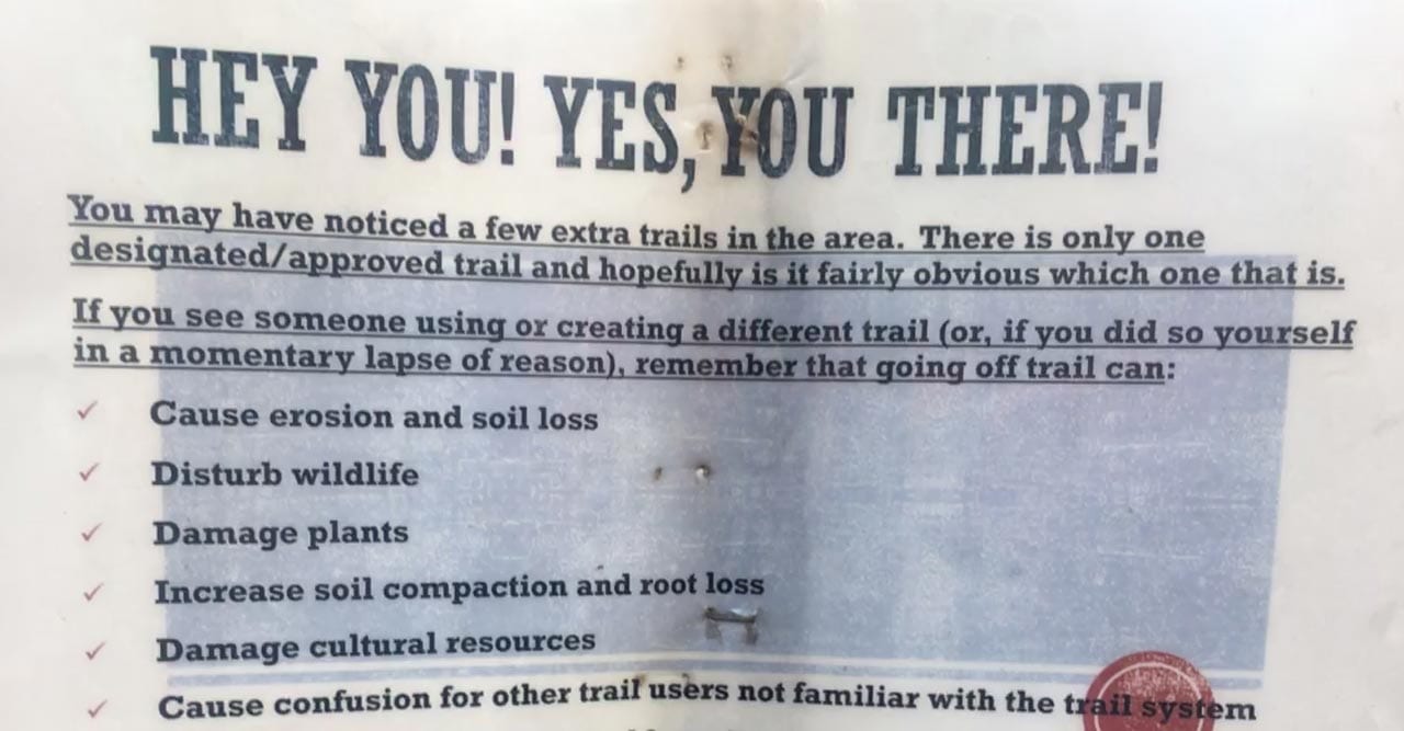 Dieses nette Schild habe ich auf dem Raiders Ridge in Durango Colorado gefunden. Hier wacht die lokale Bike Community über die Trails und die illegalen Aktivitäten drum herum.